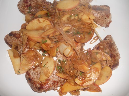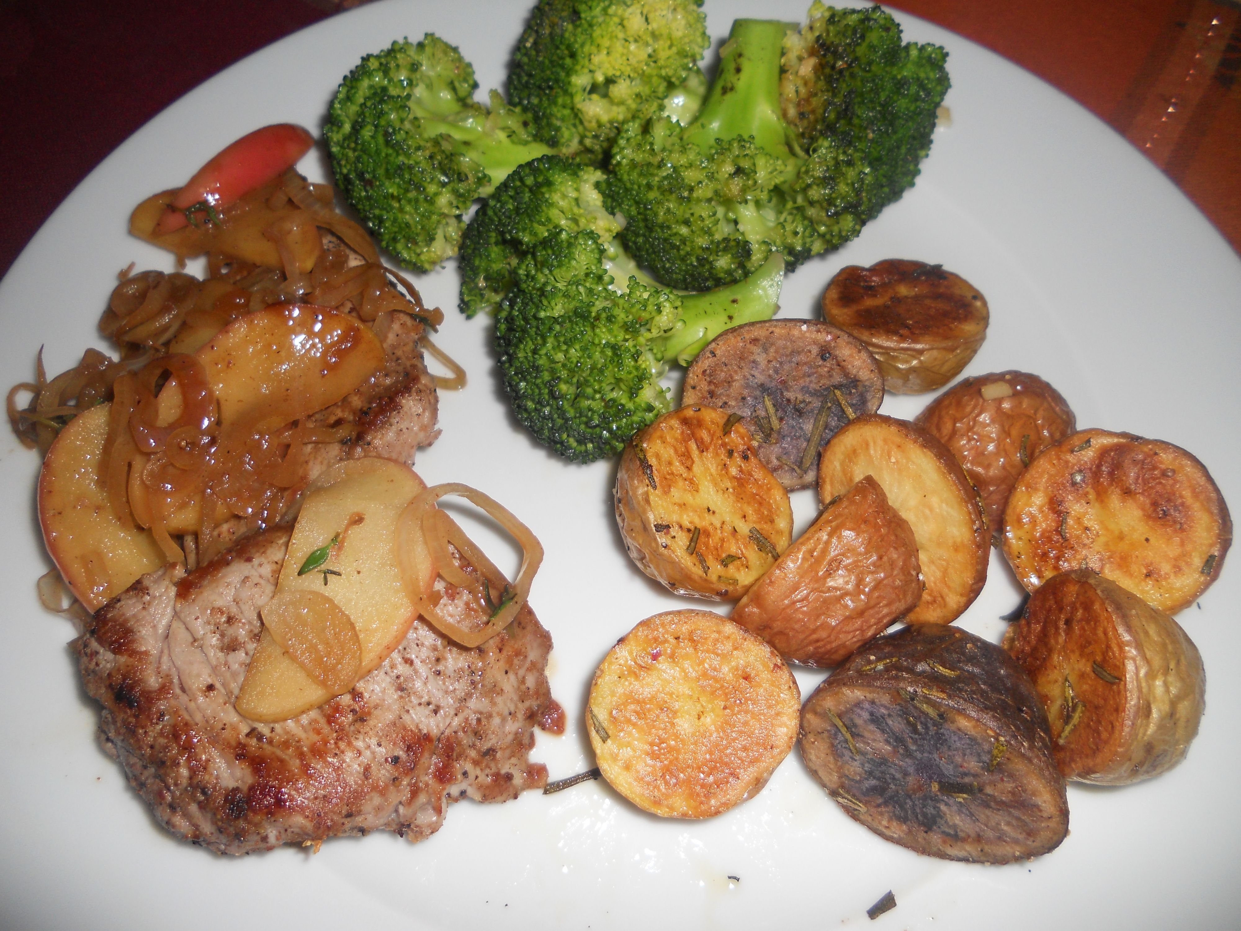 Spiced Pork Tenderloin with Sauteed Apples? Big big check. Here’s my happy plate.